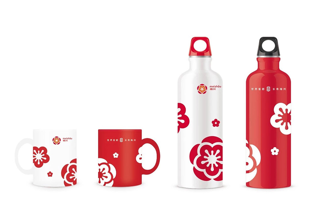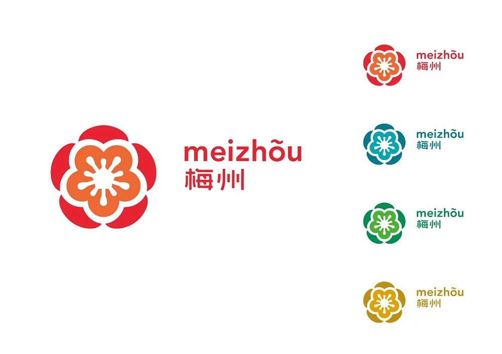 形象LOGO以梅花為形,與“梅州”有直接的聯想,圖形細節具有傳統中式紋樣的特征,表現形式又符合時代精神,具有現代標識應有的符號感。 LOGO圖形結合中英城市名稱構成主標識,英文字母O上方的符號“~”即是梅江象征,也是構成梅州獨特辨識度不可缺少的一部分,圖案由中心發散,象征客家人的開拓精神,足跡踏遍全球,向中心聚焦,象征世界客都的中心位置。在梅花的基本形態基礎上,運用環形的造型,寓意了梅州四面環山的地形,又與梅州獨具特色的圍龍屋相呼應。