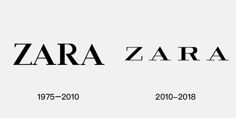 ZARA從1975年成立至今其品牌LOGO已經(jīng)有過兩次比較明顯的變化,最近一次是2010年6月,當時ZARA將自己的襯線體字標進行了“壓扁”,調整字體間距,并拉長了字體裝飾線條。此后,ZARA開始帶著這個LOGO開啟了全球擴張的步伐。