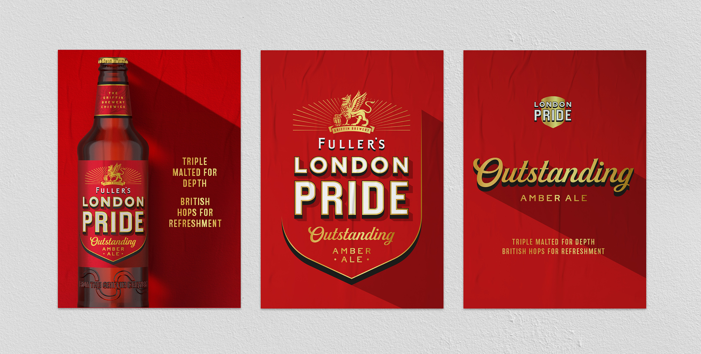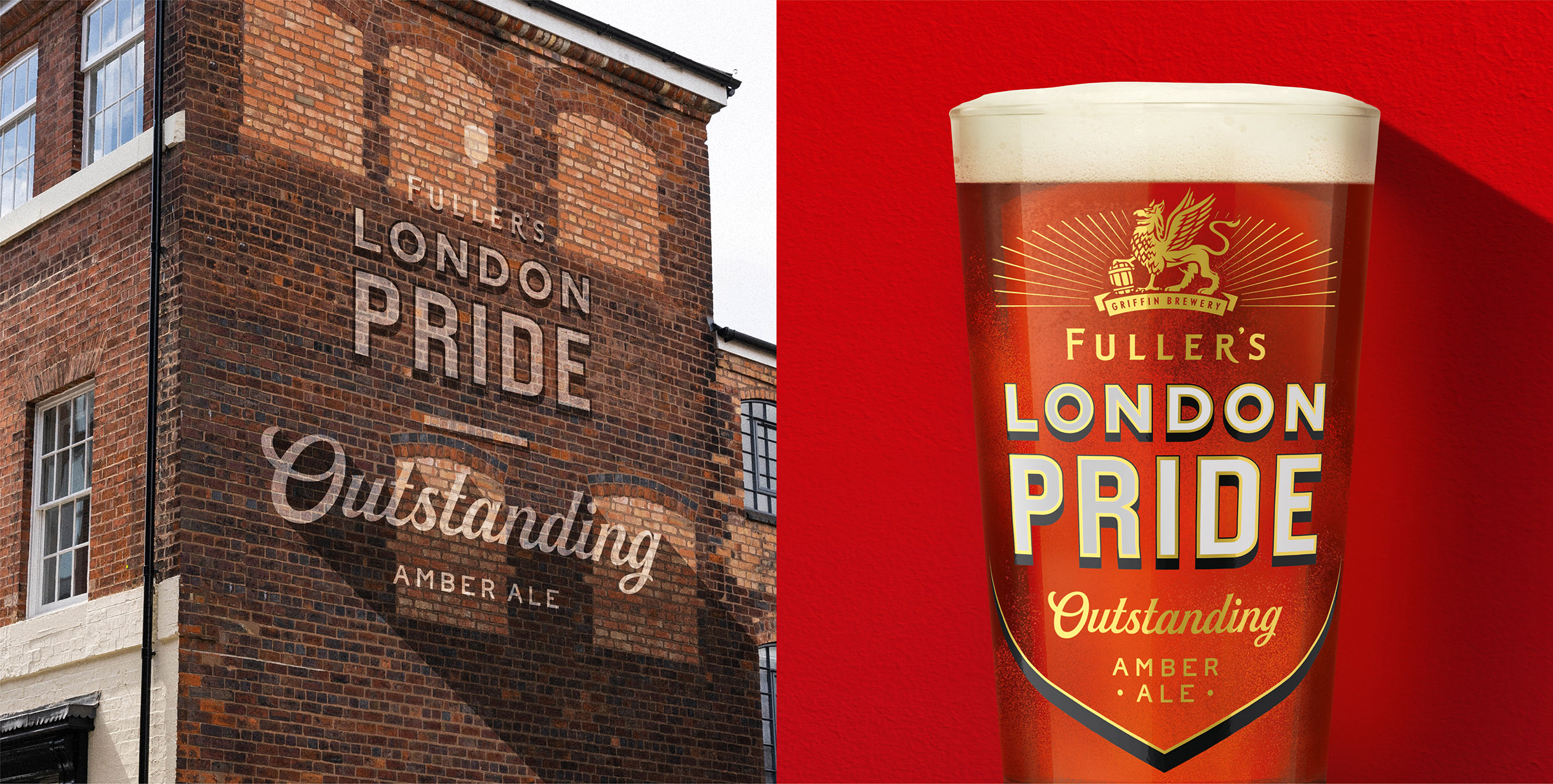 現(xiàn)代的盾牌形狀保留了該品牌過去的標(biāo)志性元素,同時又避免了陳詞濫調(diào),并且頂部還飾有輻射力格里芬(Griffin),這是富勒(Fuller)傳統(tǒng)的組成部分。盾牌還帶有“杰出的琥珀色啤酒”信息-該品牌檔案中的語言,以招牌風(fēng)格使生活栩栩如生,讓人聯(lián)想到富勒(Fuller)標(biāo)志性的倫敦小酒館的窗戶和鏡子上看到的鍍金字樣。