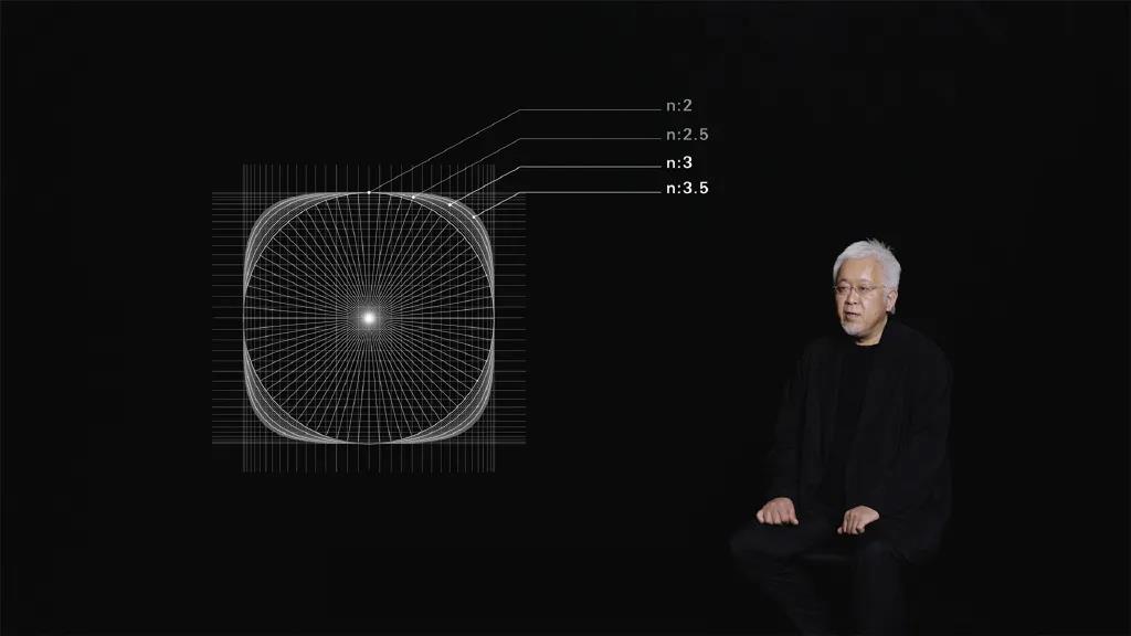 當然在此次視頻中,我們也看到了國際大師的水準,利用了數學公式|X|^n+|y|^n=1來推導出適合小米外邊矩形的圓弧,選擇其中最為合適的。