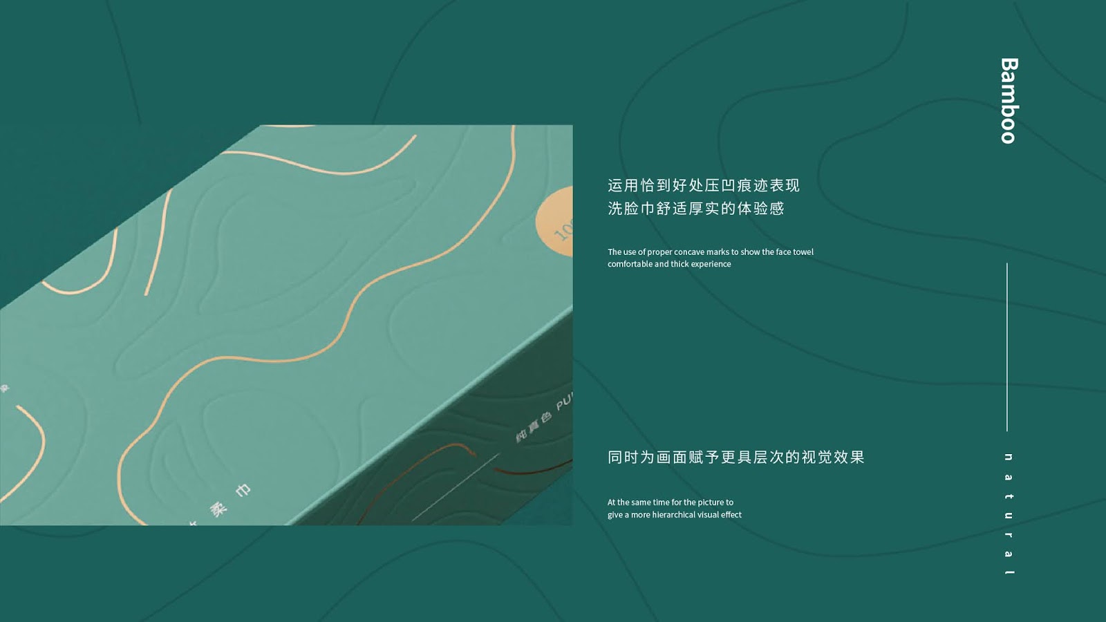 提供純竹纖維與柔軟致密的絲綢的觸覺體驗。條紋的排列和變換可以揭示竹子和優雅而優雅的風骨。涂上正確的壓痕,以顯示洗臉毛巾的舒適厚實體驗。