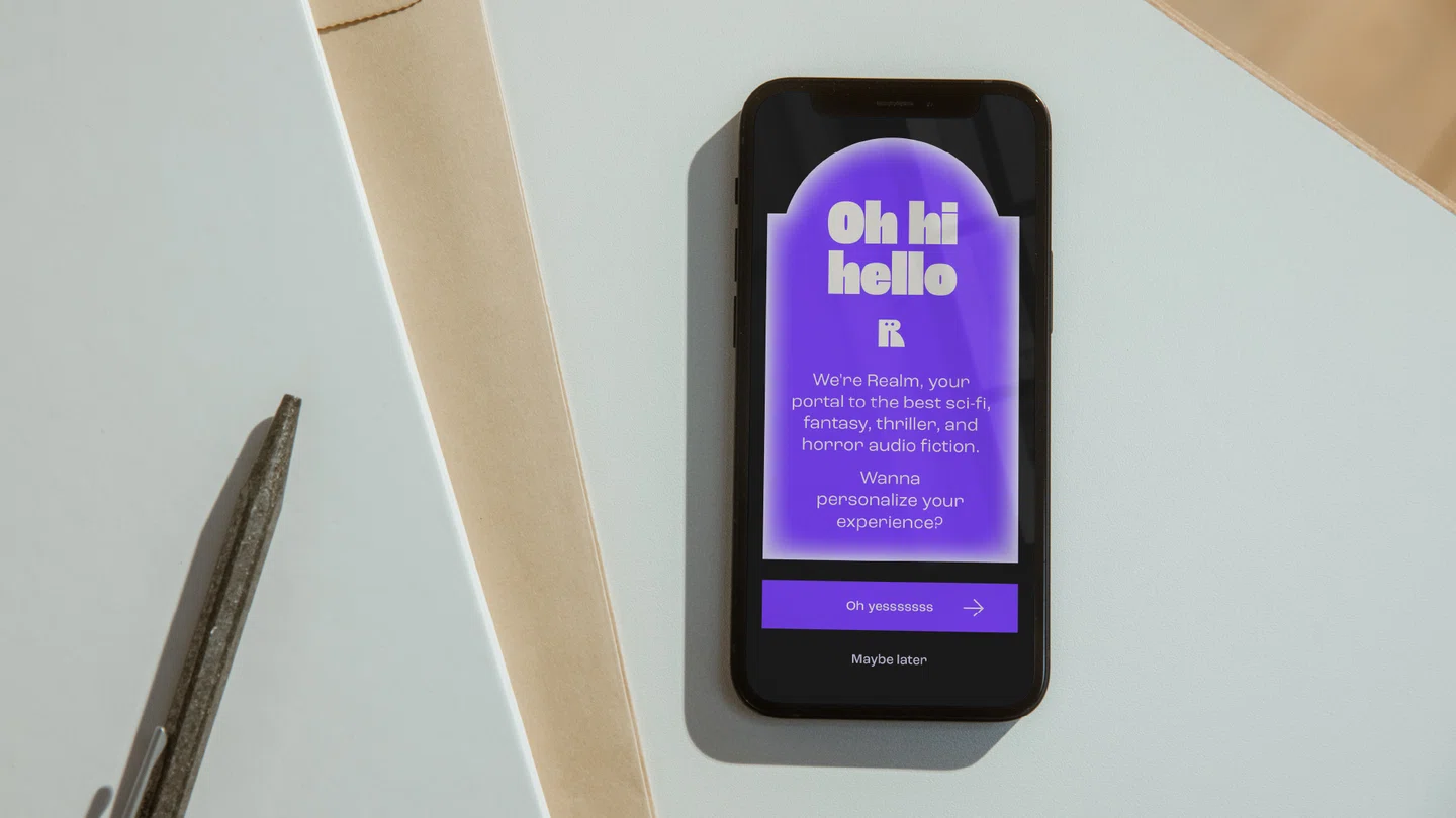 目前,Realm是Apple Podcasts上美國排名第一的虛構類播客,其聽眾無疑對它提供的逃避現實感到津津樂道。音頻娛樂公司(前稱Serial Box)多年來一直專門在科幻和奇幻類型中創作和制作情節小說播客。最近,為了配合公司發布音頻系列的方式的改進,它邀請Mother Design對其整體播客