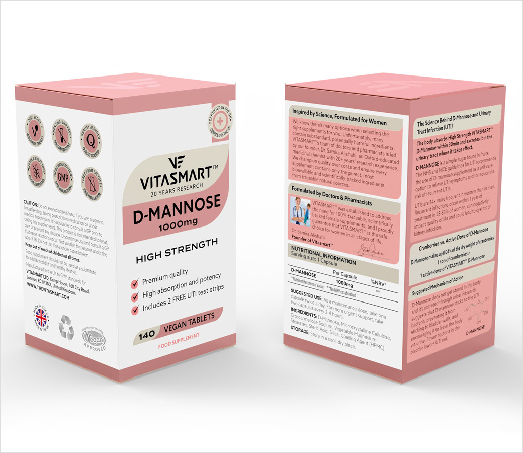 該品牌的首個產品包含1000克D-甘露糖(一種在水果中發現的簡單糖),旨在緩解尿路感染(UTI)并降低再次感染的風險。