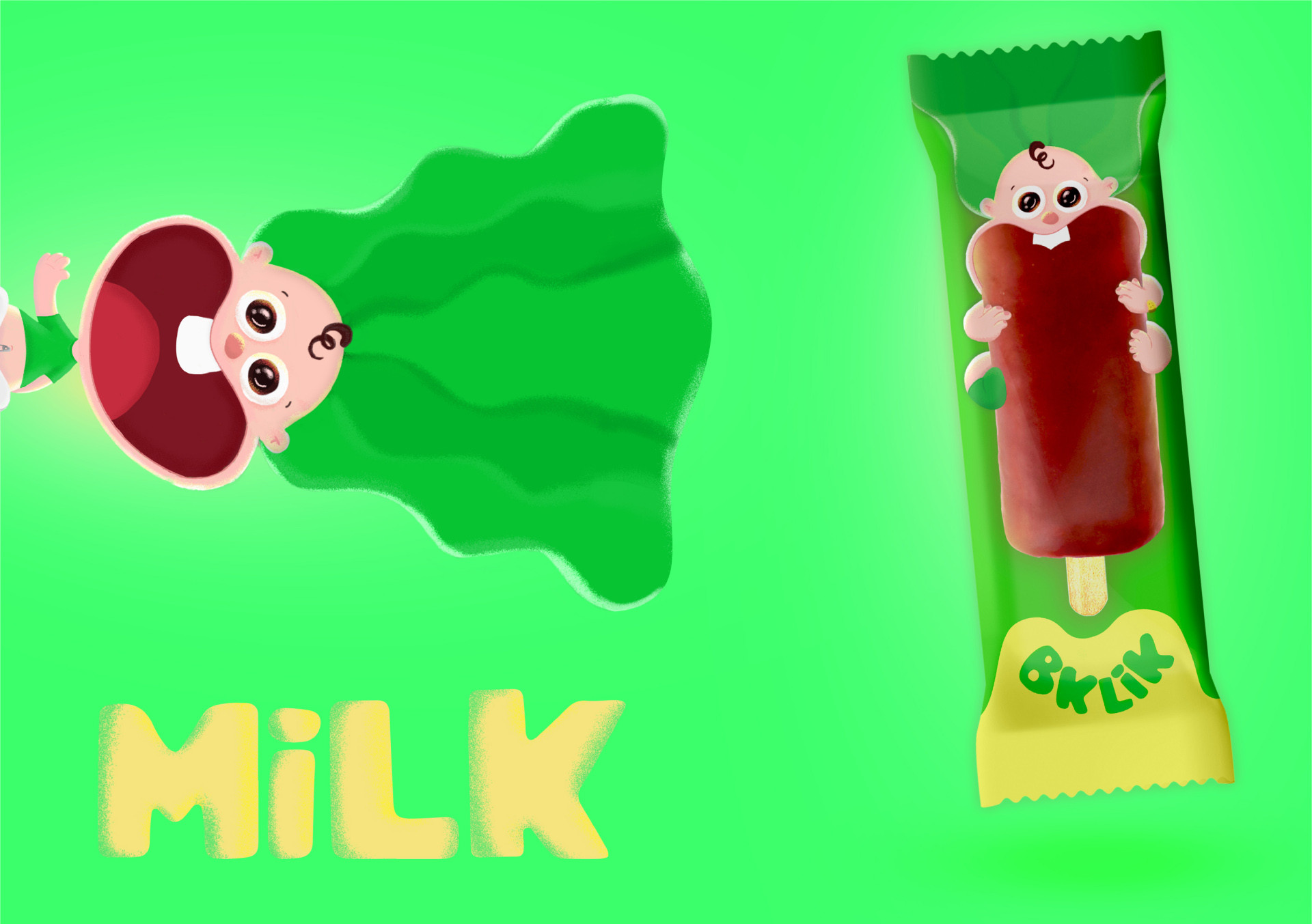 “ Bklik”這個名字是亞美尼亞語,表示“一個吃飯的孩子”,因此是我們兄弟姐妹故事的完美開端。我們將這三個小“ bkliks”稱為“ bkliks”,旨在為每種產品賦予獨特的性格,從而使目標群體的孩子產生共鳴。在包裝本身上,我們將巧克力釉面甜奶酪的正面和中央位置展示出來,以彰顯其食品風味,而且我們的角色還帶有狂躁的表情,再次傳達出愚蠢和俏皮!我們知道,每個成功品牌的秘訣都在于他們向我們講述的故事以及他們帶領我們走過的旅程。品牌的每個方面都應該講述一個連貫一致的故事,以及對于兒童而言,哪個故事更好?